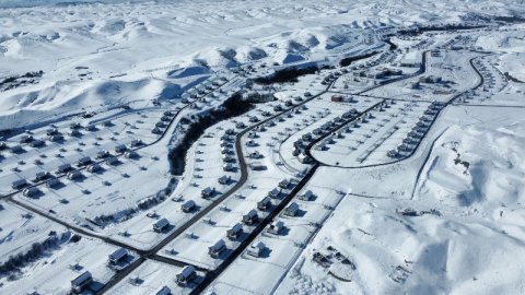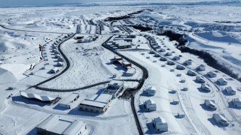 Cəbrayıl, Qubadlı və Zəngilan rayonlarında Bərpa, Tikinti və İdarəetmə Xidməti tərəfindən lentə alınan görüntülərdə sakinləri yenicə qayıdan kəndin ağ örpəyə büründüyü əks olunur.
