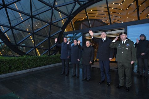 Hər iki ölkənin dövlət bayraqlarının dalğalandığı Heydər Əliyev Beynəlxalq Aeroportunda ali qonağın şərəfinə fəxri qarovul dəstəsi düzülmüşdü.