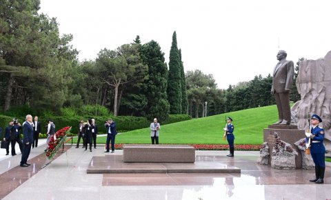 Pezeşkian Heydər Əliyevin məzarını ziyarət etdi - FOTOAzərbaycanda rəsmi səfərdə olan İran İslam Respublikasının Prezidenti Məsud Pezeşkian aprelin 28-də Fəxri xiyabana gələrək xalqımızın Ümummilli Lideri, müasir müstəqil Azərbaycan dövlətinin memarı və qurucusu Heydər Əliyevin xatirəsini ehtiramla yad edib, məzarı önünə əklil qoyub.