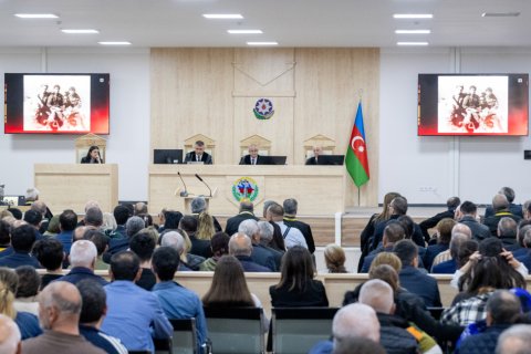 Bakıda ermənilərin növbəti məhkəməsi - FOTOErmənistanın Azərbaycana qarşı hərbi təcavüzü nəticəsində sülh və insanlıq əleyhinə cinayətlər, müharibə cinayətləri, o cümlədən təcavüzkar müharibənin hazırlanması və aparılması, soyqırımı, müharibə qanunlarını və qaydalarını pozma, habelə terrorçuluq, terrorçuluğu maliyyələşdirmə, hakimiyyəti zorla ələ keçirmə, onu zorla saxlama və digər çoxsaylı cinayətlər törətməkdə təqsirləndirilən Ermənistan Respublikasının vətəndaşları Arayik Harutyunyan, Arkadi Qukasyan, Bako Sahakyan, Davit İşxanyan, David Babayan, Levon Mnatsakanyan və digərlərinin barəsində olan cinayət işləri üzrə açıq məhkəmə prosesinin baxış iclası mayın 1-də davam etdirilib.