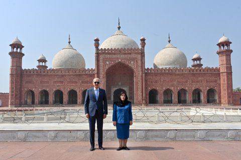 Sonra Badşahi məscidinə baş çəkən qonaqlar, burada Pakistanın tarixi keçmişinin və dini irsinin əzəmətini seyr ediblər.