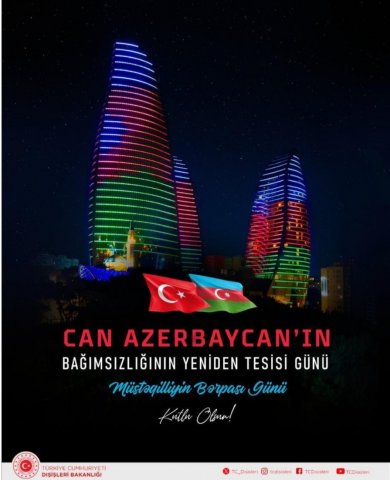 Türkiyə XİN Azərbaycanı təbrik etdiTürkiyə Xarici İşlər Nazirliyi (XİN) Azərbaycanı Müstəqilliyin Bərpası Günü münasibətilə təbrik edib.
