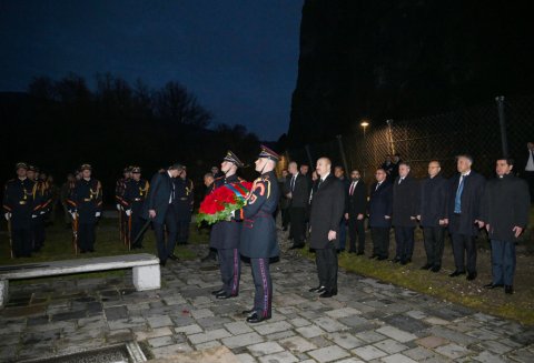 Prezident İlham Əliyev və Prezident Peter Pelleqrini abidənin önünə əklil qoyub.