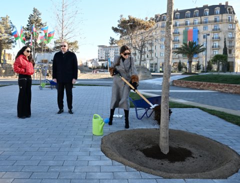 Prezident İlham Əliyev, birinci xanım Mehriban Əliyeva və qızları Palıd meydanı parkında ilk palıd ağaclarını əkdilər.