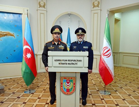 Azərbaycan Respublikasının müdafiə naziri general-polkovnik Zakir Həsənov ölkəmizdə səfərdə olan İran İslam Respublikasının müdafiə və silahlı qüvvələrə dəstək naziri briqada generalı Əziz Nəsirzadənin rəhbərlik etdiyi nümayəndə heyəti ilə görüşüb. Müdafiə Nazirliyindən verilən xəbərə görə, əvvəlcə qonaqlar Şəhidlər xiyabanında ölkəmizin müstəqilliyi, ərazi bütövlüyü və suverenliyi uğrunda şəhid olmuş vətəndaşlarımızın məzarlarını ziyarət edərək xatirələrinə ehtiram nümayiş etdiriblər. “Əbədi məşəl” abidəsinin önünə əklil qoyulub. Müdafiə Nazirliyində təşkil edilən rəsmi qarşılanma mərasimi zamanı fəxri qarovul dəstəsinin önündən keçiddən sonra hər iki ölkənin Dövlət himnləri səsləndirilib və protokola uyğun olaraq “Şərəf kitabı” imzalanıb. General-polkovnik Zakir Həsənov Azərbaycanla İran arasındakı əlaqələrin çoxəsrlik zəngin tarixə malik olduğunu qeyd edib, qarşılıqlı səfərlər çərçivəsində baş tutan görüşlərin və birgə təlimlərin bu əlaqələrin daha da dərinləşməsinə töhvə verdiyini vurğulayıb. Briqada generalı Əziz Nəsirzadə ölkələrimiz arasında dostluq və qardaşlıq münasibətləri üzərində qurulan əməkdaşlığın digər sahələrdə olduğu kimi, hərbi sahədə daha da inkişaf etdirilməsinin mühüm əhəmiyyət kəsb etdiyini qeyd edib. Görüşdə hərbi, hərbi-texniki, hərbi təhsil və elm sahələrində əlaqələrin cari vəziyyəti, eləcə də inkişaf perspektivləri müzakirə edilib. Tərəflər, həmçinin regional təhlükəsizlik və qarşılıqlı maraq doğuran bir sıra digər məsələlərə dair ətraflı fikir mübadiləsi aparıblar.