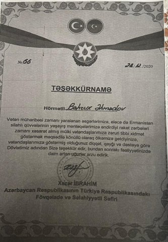 Həkim soydaşlarımızın belə ağır, taleyüklü gündə Vətənimizə dönməsi Türkiyədəki Azərbaycanlı Həkimlər Dərnəyinin təşkilatçılığı və Azərbaycanın Ankaradakı səfirliyinin dəstəyi ilə həyata keçirilmişdi. Onların təşəbbüsü ilə qardaş ölkədə toplanan 2 tona yaxın tibbi ləvazimat da ölkəmizə gətirilmişdi.