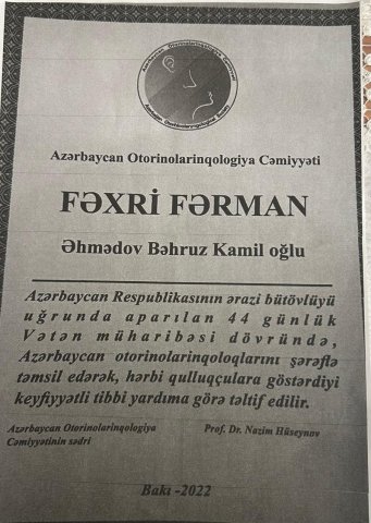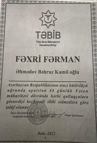 Bu yazıda haqqında bəhs edəcəyim qəhrəmanım 44 günlük Vətən müharibəsində könüllü olaraq böyük fədakarlıq göstərən, Türkiyədəki işini yarımçıq qoyub Vətənin dar gününə özünü çatdırmağı oğul borcu bilən həmin həkimlərdən biridir. O mənim əziz müəllimlərim Kamil müəllim və Kifayət müəllimənin yeganə oğul övladı, Lor-cərrah doktor Bəhruz Kamil oğlu Əhmədovdur.