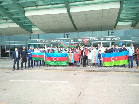 Gənc həkimlərimiz Azərbaycana döndüklərini üçrəngli bayrağımıza bürünərək Esenboğa Hava Limanında nümayiş etdirmişdilər.
