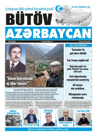 Sabah hava necə olacaq? .....                        ABŞ kəşfiyyatı təkzib etdi .....                        Ağdama daha 92 ailə köçürülüb .....                        İran danışıqlardan imtina etdi .....                        Naxçıvanda avtomobillər toqquşdu, xəsarət alanlar var .....                        Mükəmməl tədqiqat əsəri .....                        “Milli Pediatriya Dərnəyinin I Milli Konqresi” keçirilib .....                        Azərbaycanın hərb tarixinə dair kitab türk dilində çapdan çıxıb .....                        Qərib sənətkar .....